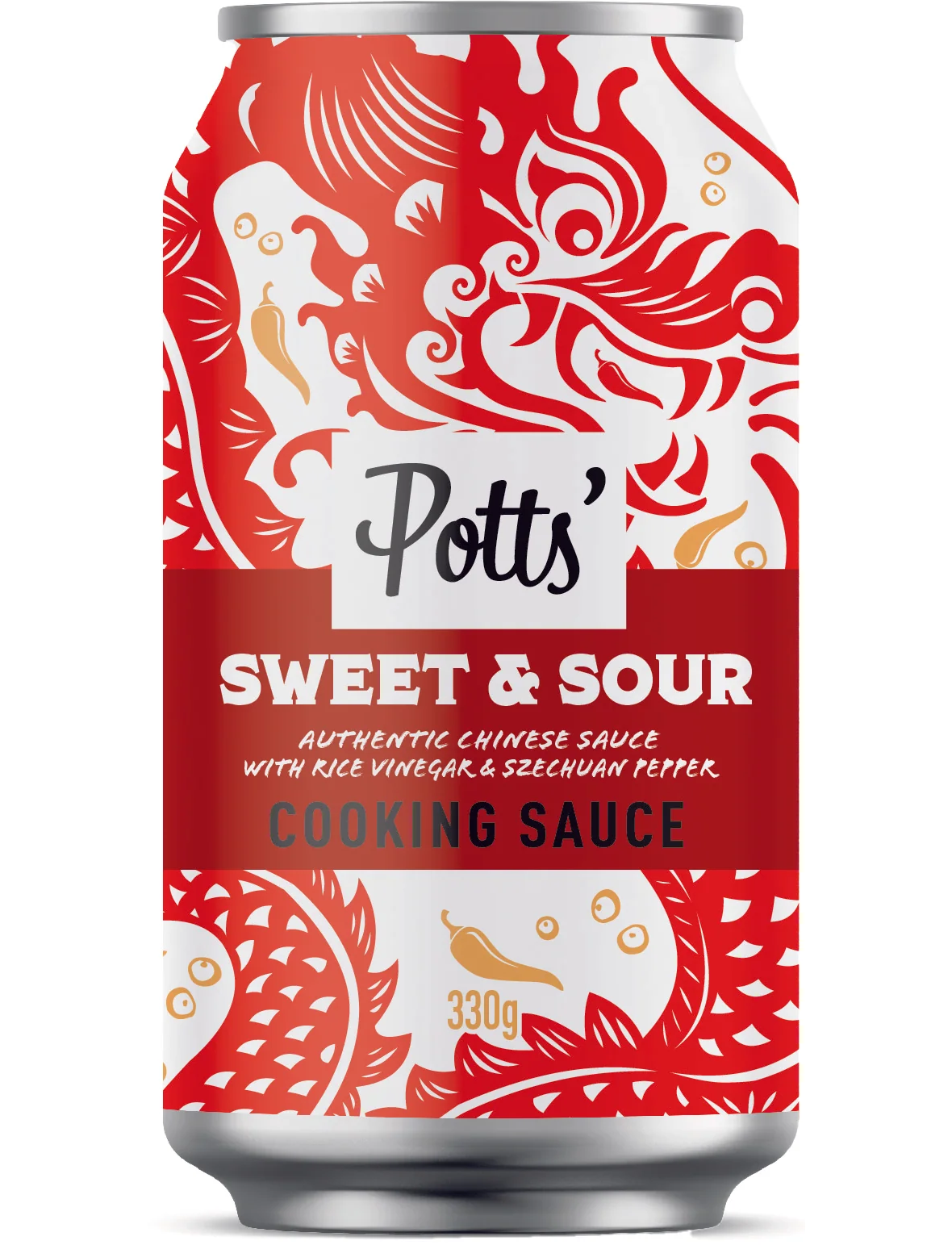 Справжній китайський соус з рисовим оцтом і сичуаньським перцем. Кисло-солодкий кулінарний соус Potts' — це класичний китайський соус із невеликою кількістю сичуаньського перцю для ще більшого смаку. Поставляється у 100% переробленій «пивній» банці з повністю знімною кришкою.