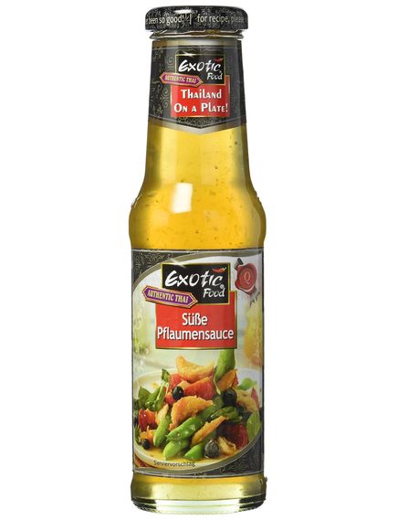 Склад: цукор, вода, оцет спиртовий, солодкі сливи 3,5%, сіль, стабілізатор: камель Е415, консервант: сорбат калію Е202.