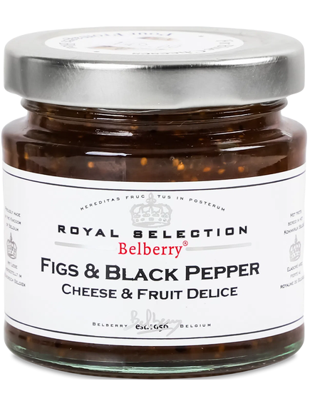 Натуральний конфітюр і чатні з інжиром і гостринкою чорного перцю. Ідеальна пара до блакитних сирів. Додайте ложку чатні до крекеру або хлібців зі шматочком рокфору чи стілтону. Без консервантів і смакових добавок. Belberry – офіційний постачальник конфітюру для королівського двору Бельгії і є одним із кращих виробників конфітюру та чатні країни.