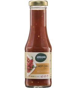 Склад: вода, сироп агави*, концентрат яблучного соку*, коньячний оцет*, червоний чилі* 4%, томатна паста*, імбир*, крохмаль тапіоки*, морська сіль, загусники (гуарова камедь*, камедь ріжкового дерева*), мелений чилі* 0,5%, часник*, пластівці червоного перцю*. *=З контрольованого органічного...