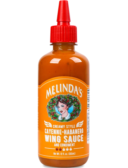 Melinda's Creamy Cayenne – Habanero. Наш оригінальний соус до крилець, тому що, так, світу потрібен кращий соус до крилець. Ми змішали наш фірмовий Habaneros з невеликою кількістю кайєнського перцю, щоб зробити найбільш непереборно гострий і гострий соус, який ви коли-небудь намащували на курячі крильця. Зроблено так, як Мелінда: із цілими свіжими інгредієнтами та найкращим перцем на планеті для людей, які піклуються про такі речі. Насолоджуйтесь крилами, куркою, креветками-петардами, загортаннями, бутербродами та практично всім.