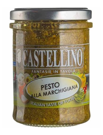 Склад: базилік 25%, СИР 14,7% (МОЛОКО коров'яче та овече, сіль харчова, сичужний фермент), оливкова олія екстра вірджин, соняшникова олія, КЕДРОВИЙ ГОРІХ, майоран 7%, сіль харчова, оцет з білого вина, регулятор кислотності (кислота молочна), антиоксидант (аскорбінова кислота).