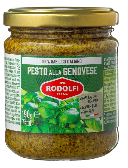 Зелений песто – те, що вам потрібно, якщо ви хочете привнести у свої страви автентичний смак італійської культури. Свіжий базилік, доданий до найвідомішого італійського сиру, став нашим зеленим песто. Зелений песто без консервантів та барвників доступний у склянці 190г. Підходить для приправ до будь-яких макаронних виробів, а також для приготування пікантних тістечок, брускет і кростіні.