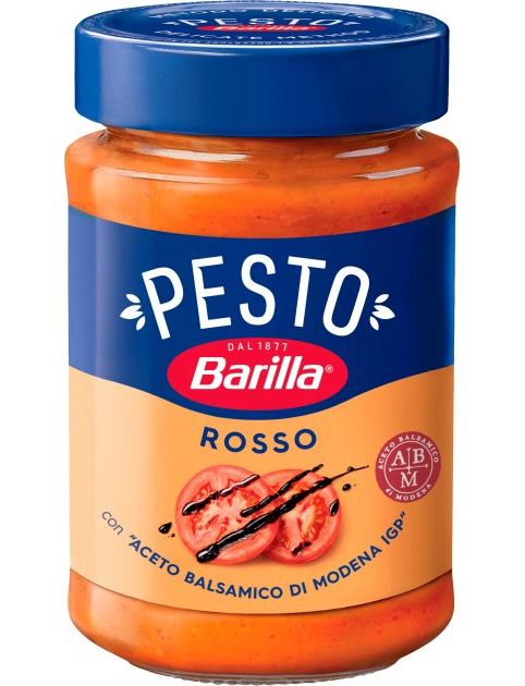 Склад: томати шматочками 34,8%, олія соняшникова, концентрат помідорів 15%, сир грана падано доп 4%, сіль, базилік 2%, бальзамічний оцет 2%, сир пекоріно романо 1%, цукор.