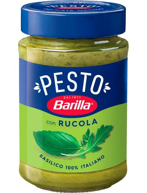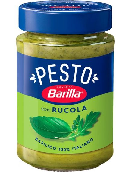 Склад: соняшникова олія 38,5%, базилік 20,7%, петрушка 11,8%, сир пекоріно, сухе молоко, сіль, рукола 1,5%, майоран, часник.