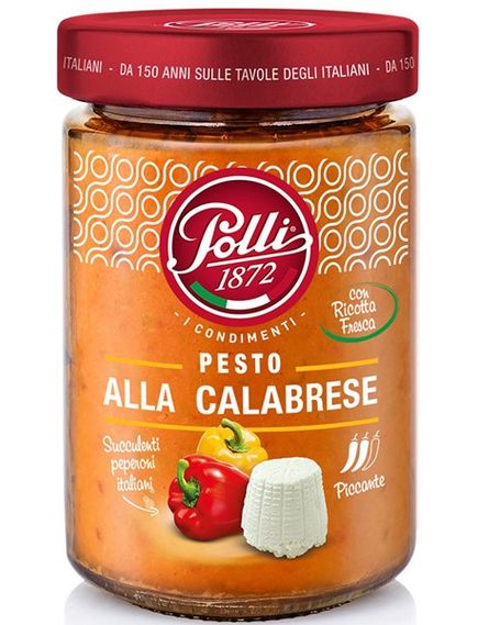 Polli CALABRIAN PESTO походить від давніх традицій досвіду та пристрасті до італійської кухні. Соковитий італійський перець, зібраний, промитий і негайно приправлений оливковою олією першого віджиму, перцем чилі та свіжою рікоттою з дотриманням найкращих калабрійських традицій!