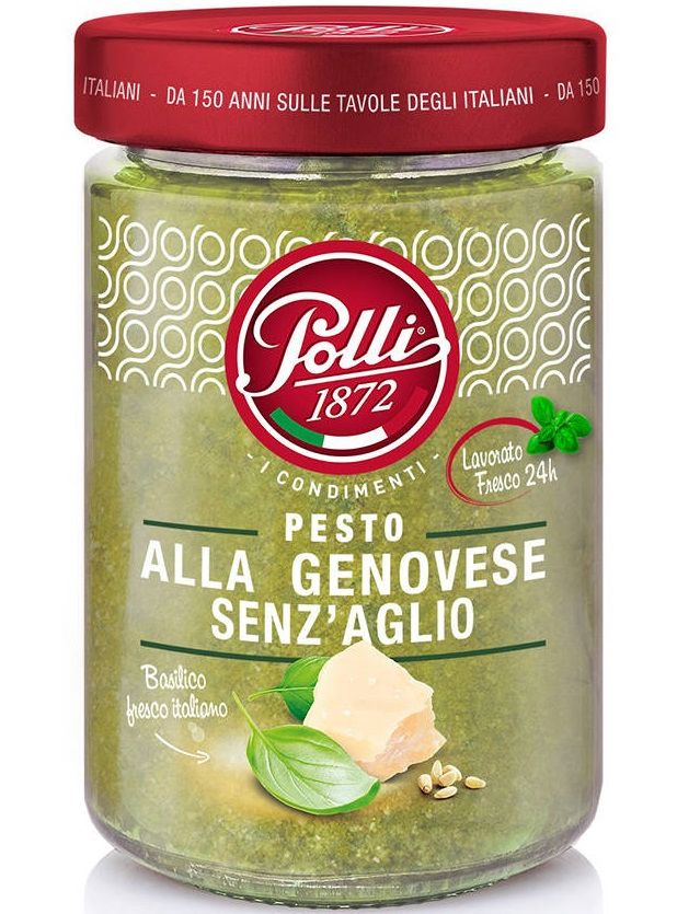 Polli Genoese Pesto походить від давньої традиції досвіду та пристрасті до італійської кухні. Його виробляють із запашним базиліком, 100% італійським із сертифікованої ланцюга поставок*, який обробляють свіжим протягом 24 годин після збирання, до якого ми додаємо смачні італійські сири.