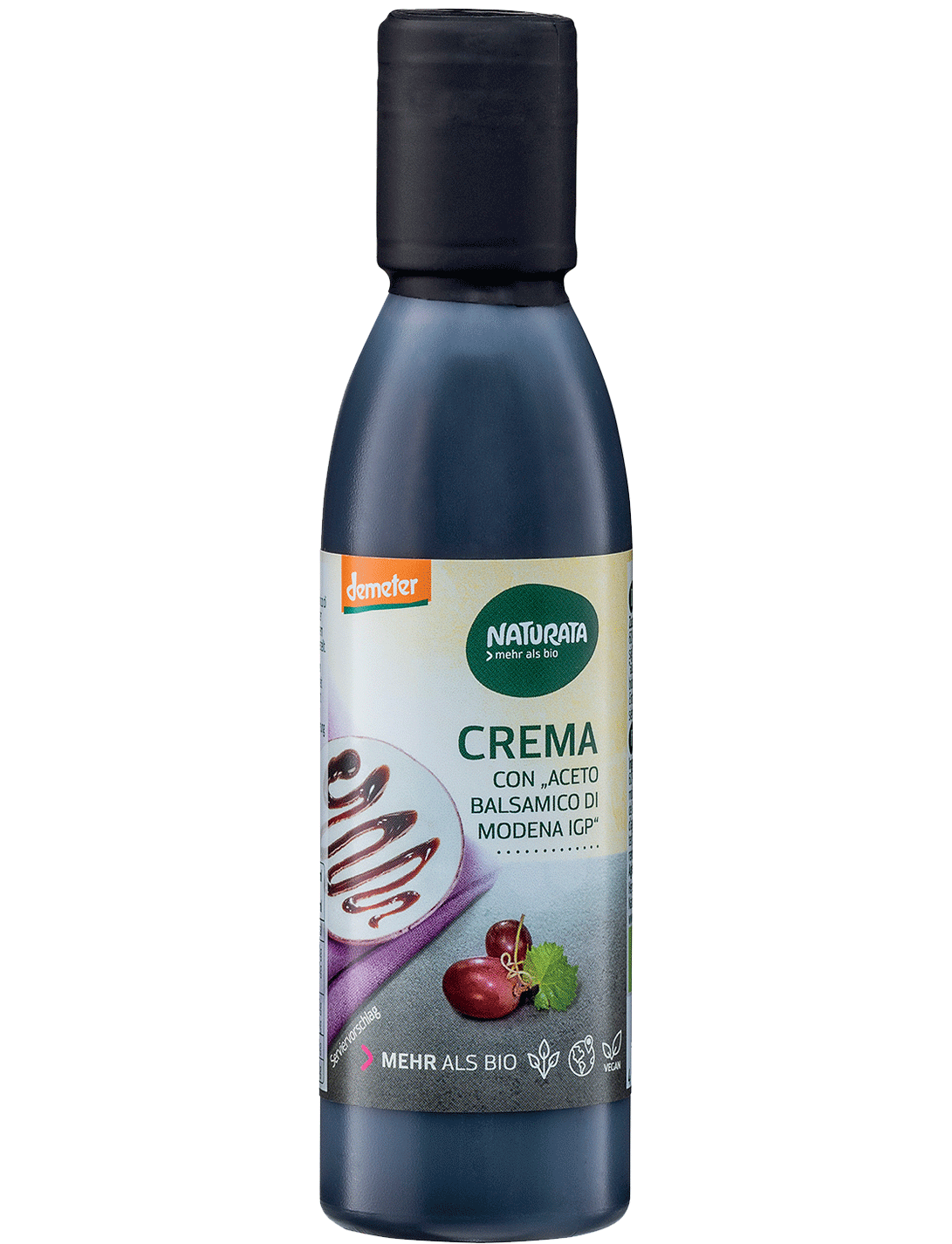 Вершки виготовлені з високоякісного Demeter Aceto. Отримана в результаті унікальної взаємодії вареного виноградного сусла, яке виробляється традиційним способом на відкритому вогні просто неба, і не менш високоякісного Aceto Balsamico di Modena IGP, ця вершка вражає своїм смаком і насиченим ароматом. досягається завдяки високій частці 60% Aceto Balsamico di Modena. Типовий колір пов’язаний виключно з процесом виробництва. Не використовуються барвники. Для цього ацето використовується несульфований виноград. Сульфіти можуть природним чином утворюватися під час бродіння та дозрівання.