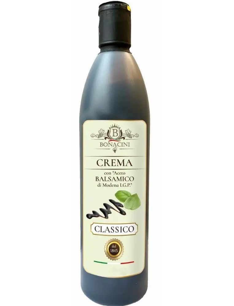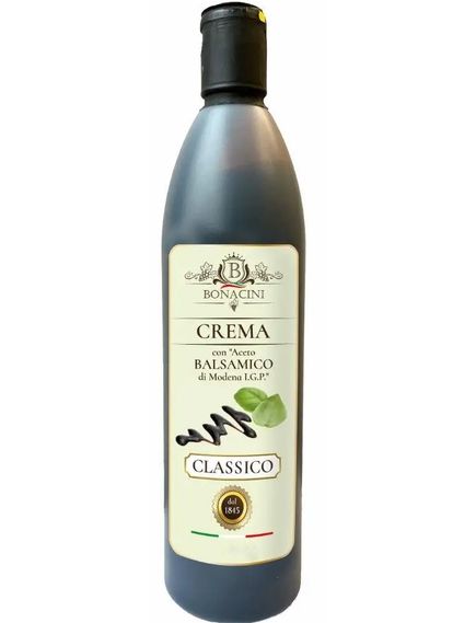 Склад: концентроване виноградне сусло, глюкозно-фруктозний сироп, бальзамічний оцет з Модени 20% (винний оцет, онцентроване виноградне сусло, барвник: карамель Е150D, антиоксидант: сульфіти), винний оцет, модифікований крохмаль, барвник Е150D. Містить сульфіти.