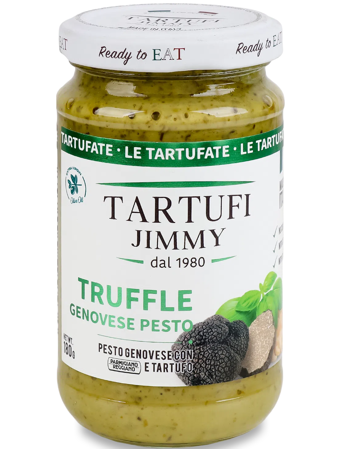 Склад: трюфельний сік (вода, Tuber aestivum Vittad ), соняшникова олія, лучні гриби (Agaricus bisporus), базилік 8%, пармезан (молоко, сіль, сичужний фермент) 5%, оливкова олія екстра вірджин 5%, модифікований крохмаль, подрібнений літній трюфель (Tuber aestivum Vittad - походження з ЄС) 3%, натуральні ароматизатори, горіхи кеш'ю 2%, сирна суміш (молоко, сіль, сичужний фермент, консервант: яєчний лізоцим), сироватковий протеїн, емульгатор: соняшниковий лецитин, сіль, цукор, ароматизатори.