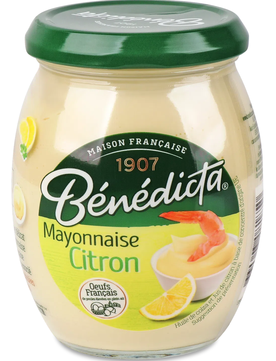 Склад: ріпакова олія 69 %, вода, жовтки яєчні пастерезовані* 5 %, гірчиця Діжонська (вода, зерна гірчиці, оцет спиртовий, сіль), оцет спиртовий, лимонний сік з концентрату 2.2 %, олія лимонна ефірна, цукор, сіль, модифікований крохмаль, барвник бета–каротин.