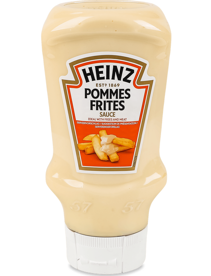 Heinz Frites — це спеціальний соус, який розроблений для подачі до картоплі фрі (або іншої смаженої картоплі) та інших страв швидкого харчування. Він має кремову текстуру і ніжний смак, який поєднує в собі легку кислинку та солодкуваті нотки, створюючи ідеальний баланс для смажених страв.