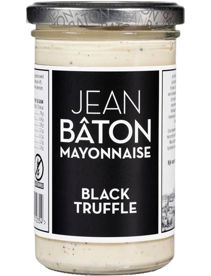 Знаменитий майонез Жана Батона з чорними трюфелями готується з 1,5% справжніх трюфелів і ідеально підходить до гарного шматка м’яса. Але трюфельний майонез Жана Батона також робить щось особливе із бутерброду зі старим сиром, карпаччо чи шматка тріски.