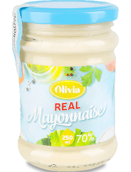 Склад: олія соняшникова рафінована дезодорована (70%), вода питна, цукор білий, жовток яєчний сухий, сіль кухонна, регулятор кислотності - харчова оцтова кислота, емульгатор - крохмаль модифікований, регулятор кислотності - лимонна кислота, консервант - сорбат калію, ароматизатор "Гірчиця", декстроза моногідрат, мальтодекстрин, стабілізатор - камедь ксантанова, барвник натуральний - бета-каротин.