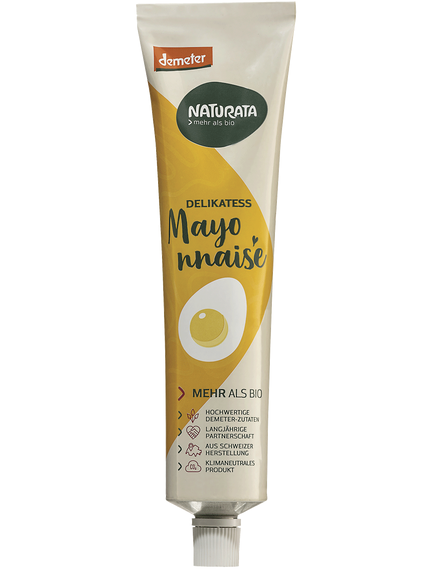 Вишуканий делікатесний майонез Naturata виробляється в Швейцарії особливо дбайливо з високоякісних інгредієнтів Demeter. Збалансована рецептура забезпечує типовий смак майонезу.
