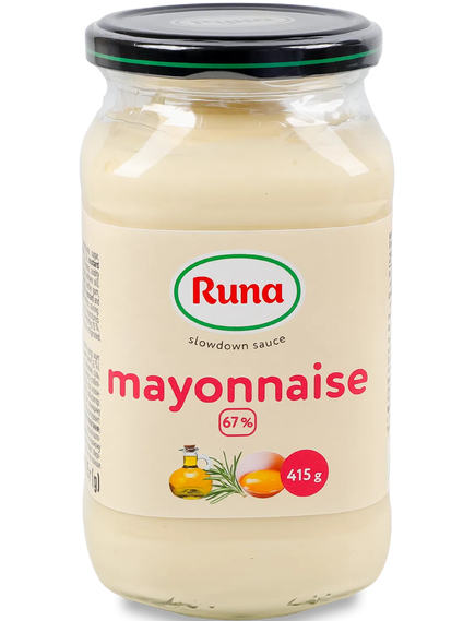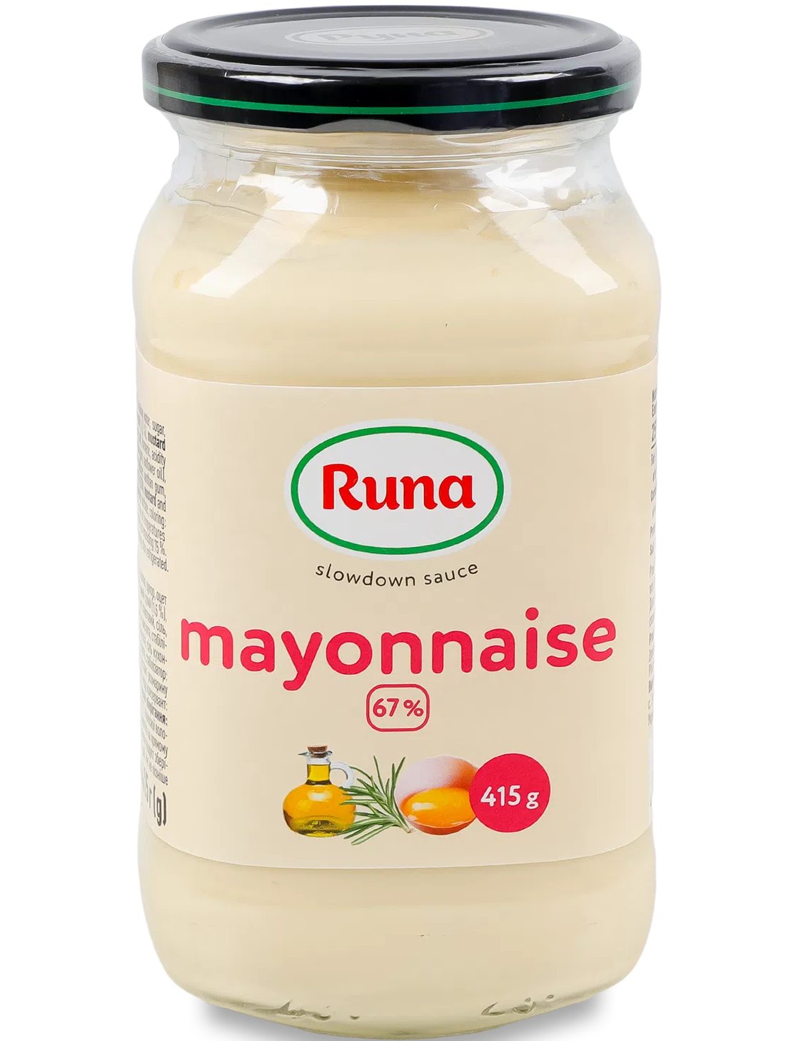 Склад: соняшникова олія (67%), вода питна, цукор, оцет спиртовий, жовток яєчний ферментований сухий (1.5%), гірчиця (вода питна, зерно гірчиці, оцет спиртовий, сіль, куркума, регулятор кислотності: лимонна кислота, стабілізатор: ксантанова камедь, олія ова камедь, антиоксиданти: екстракт розмарину (0.01%), ЕДТА, ароматизатори гірчиці та меду, консервант: сорбат калію, барвник: β-каротин.