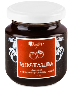 Склад: вишня (55%), цукор та/або глюкозно-фруктозний сироп, регулятор кислотності лимонна кислота, натуральний екстракт гірчиці, ароматизатор Амарена.