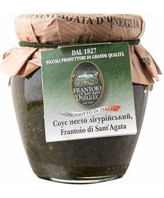 Склад: оливкова олія першого холодного віджиму Extra Virgin 63%, базилік, кедрові горіхи, сіль харчова, сир Парміджано Реджано 2,8% (молоко, сіль харчова, сичужний фермент), часник, винний оцет, регулятор кислотності (молочна кислота, лимонна кислота).
