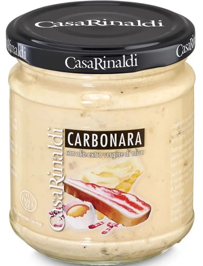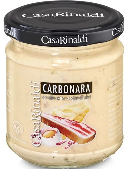 Casa Rinaldi пропонує його у готовому, швидкому та смачному варіанті. Соус на основі пекоріно романо, грана падано та бекону з додаванням вершків для додаткової вершковості; інгредієнти, в яких можна оцінити індивідуальні аромати та смаки, інтенсивні та однозначно цікаві.