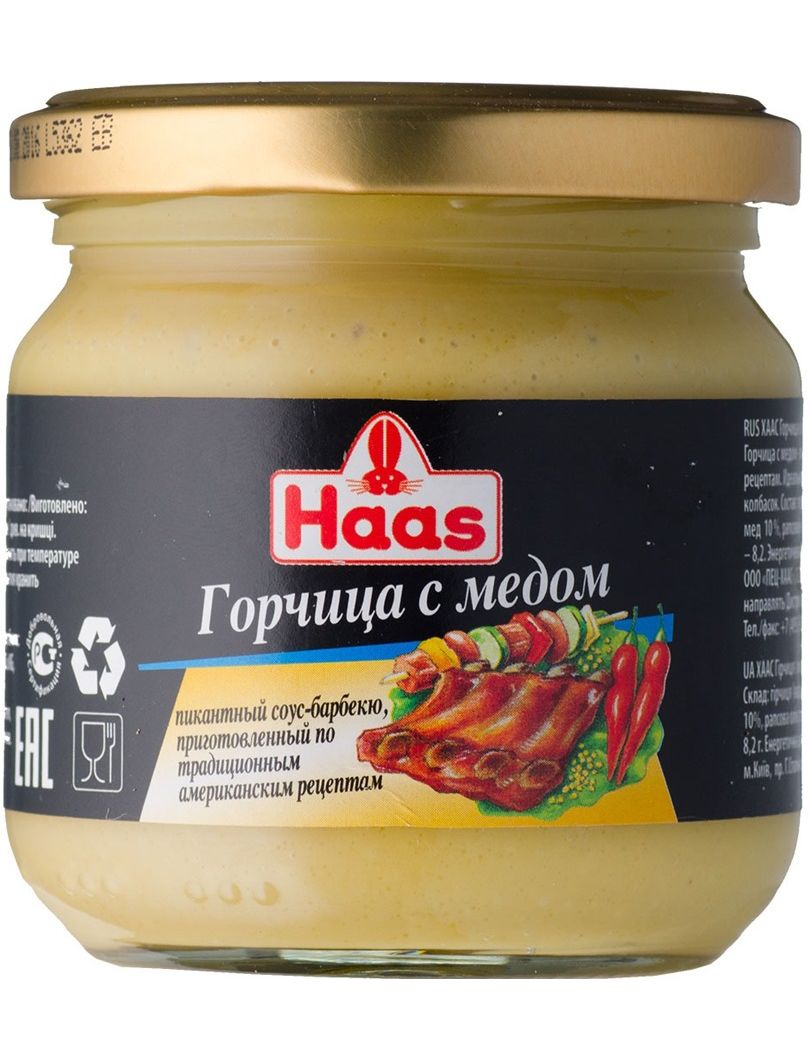 Гірчиця з медом Haas - ароматна, солодкувата та пікантна, з медовими нотами, приготована за американськими рецептами. Ідеальна для приготування гострих реберець, курячих крилець і будь-якого смаженого м'яса зі смачною "медовою" скоринкою. Також підходить як маринад.