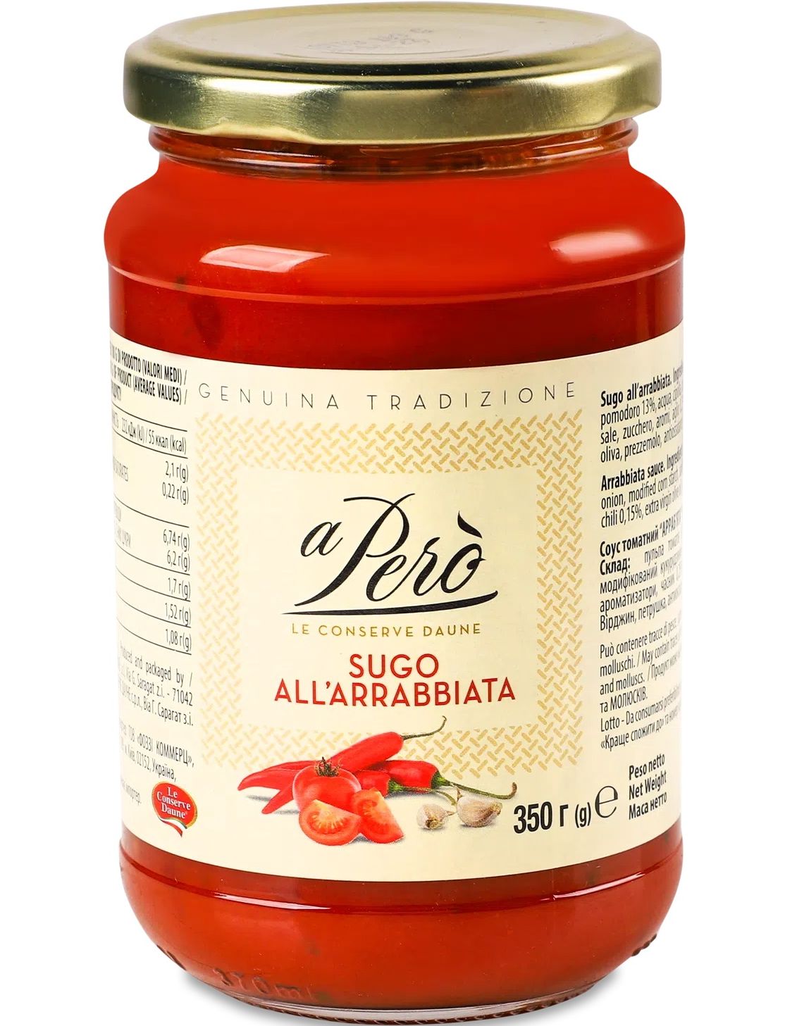 Соуси aPerò – це зручне та швидке рішення для цінителів смаку і любителів італійської кухні. Приготувати традиційну італійську пасту вдома стало ще легше завдяки цим соусам! Досить додати пару ложок готового соусу “аПеро” у Вашу улюблену пасту і страва готова. Томатний соус з базиліком це класика італійської кухні, приготований за традиційним рецептом, який відмінно підійде для всіх видів пасти. Це універсальна заправка для Ваших страв, яку можна урізноманітнити за бажанням, додавши морепродукти, овочі або улюблені спеції. Обравши саме цей соус Ви не прогадаєте. До складу продукції лінійки “aPerò” входять тільки якісні й перевірені інгредієнти.