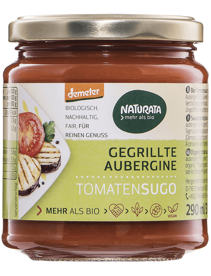 Томатний суго Naturata demeter — це типовий італійський соус для макаронних виробів, виготовлений із біодинамічних помідорів з баклажанами на грилі.