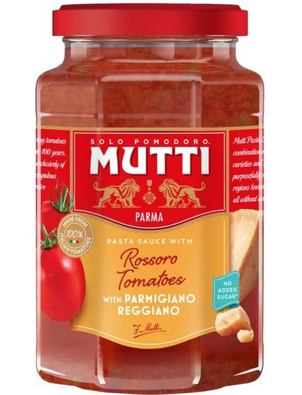 Насичений і інтенсивний. Помідори Россоро в поєднанні з Парміджано Реджано. У соусах для пасти Mutti використовуються лише найякісніші, 100% італійські літні помідори, зібрані на піку стиглості. Ми ретельно обираємо певний сорт томатів, який найкраще поєднується з нашими унікальними італійськими інгредієнтами. Тут фруктовий інтенсивний помідор Россоро поєднується з Парміджано Реджано (PDO) – захищеним сиром із гострим і складним смаком, лише з провінцій Парма, Реджо, Емілія, Модена, Болонья та Мантуя.