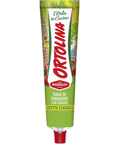 Склад: томатна паста (70%), сортовані овочі (селера, морква, цибуля, петрушка) (18%), оливкова олія (3,5%), цукор, ароматні трави, сіль.