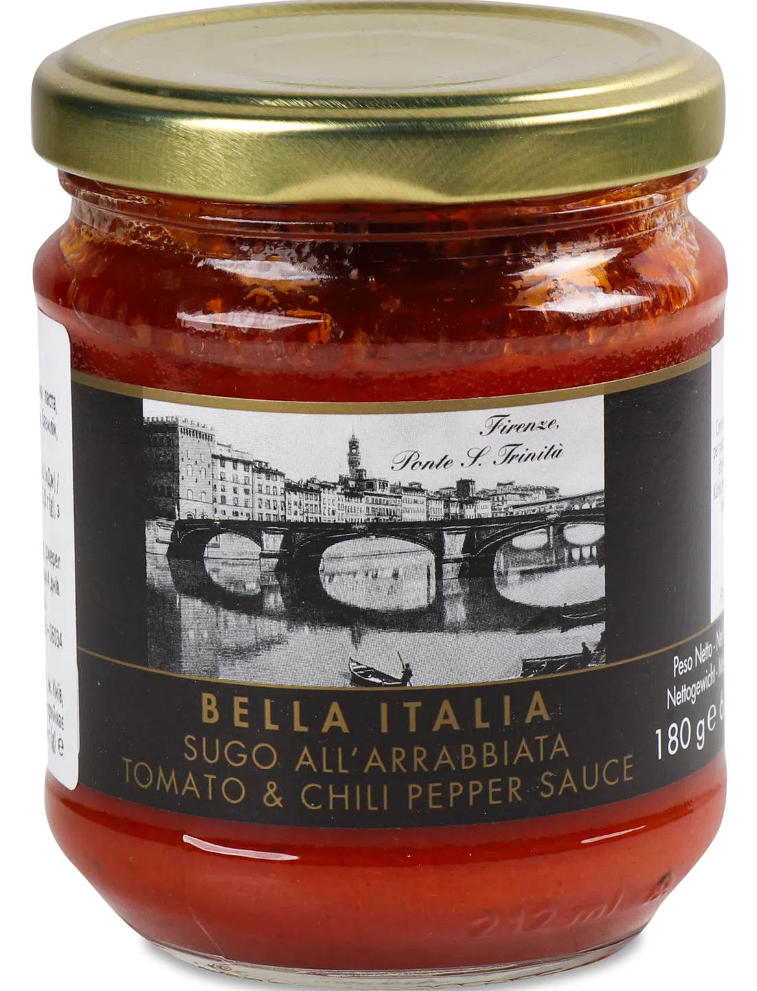 Bella Italia Соус томатний Аррабьята з перцем Чилі — це смачний і гострий соус, що додає стравам пікантності та яскравого італійського аромату.