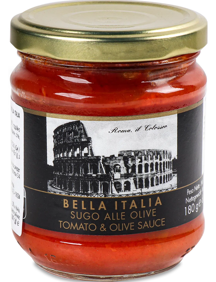Bella Italia Соус томатний з оливками — це смачний і зручний соус, який додає стравам солонуватий, ароматний італійський смак, ідеально підходить для тих, хто любить середземноморську кухню.