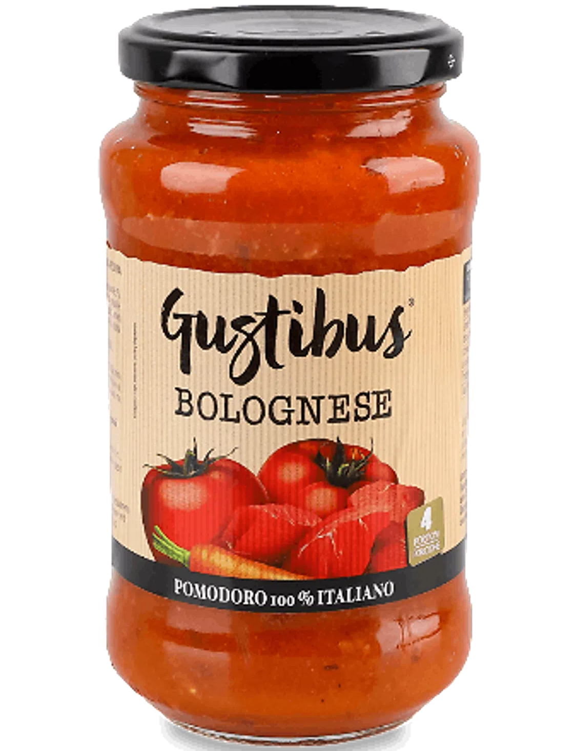 Gustibus Соус томатний Болоньєзе — це готовий до вживання соус на основі помідорів, який поєднує смачні томатні ноти з м'ясними інгредієнтами та спеціями, характерними для італійського соусу Болоньєзе. Болоньєзе — це традиційний італійський соус, що зазвичай готується з м'ясного фаршу (яловичина, свинина) та овочів (морква, цибуля, селера), а також з томатами, що дають йому яскраво виражений смак.