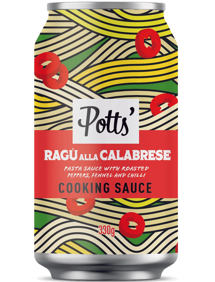Смачний соус для пасти зі смаженим перцем, фенхелем і чилі. Ragù Alla Calabrese від Potts — це гостра південноіталійська версія болоньєзе зі смаженим перцем і фенхелем. Поставляється у 100% переробленій «пивній» банці з повністю знімною кришкою.