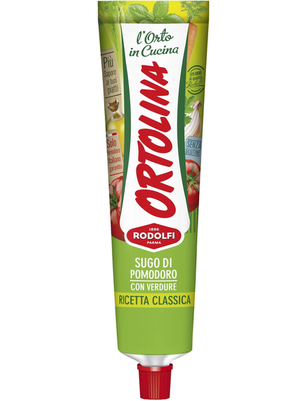 Склад: томатна паста (70%), сортовані овочі (селера, морква, цибуля, петрушка) (18%), оливкова олія (3,5%), цукор, ароматні трави, сіль.