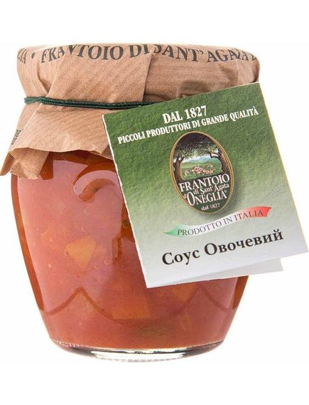 Склад: італійські помідори 35%, цукіні 15%, перець 15%, цибуля 10%, морква 10%, оливкова олія першого віджиму, селера 5%, цукор, сіль, часник 1%, ароматичні трави.