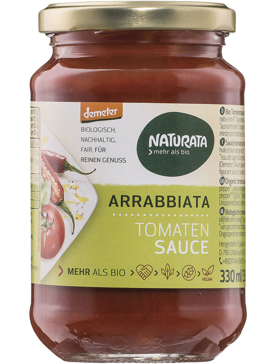 Склад: помідори**85%, перець**, оливкова олія першого віджиму**, сироп агави* 2,2%, морська сіль, часник**, кайенский перець** 0,28%. *=З контрольованого органічного вирощування ** = з біодинамічного вирощування (Demeter).