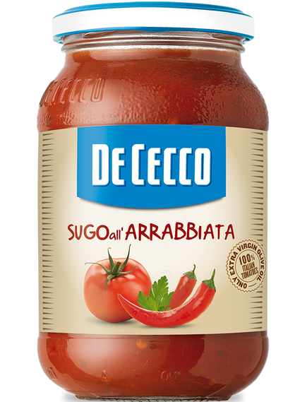 У соусі De Cecco «Sugo all'Arrabbiata» смак перцю чилі підкреслює смак цибулі, обсмаженої на оливковій олії першого віджиму, створюючи насичений, міцний соус. Рецепт розроблено всесвітньо відомим шеф-кухарем Хайнцем Беком. «Sugo all'Arrabbiata» від De Cecco готується лише з італійських помідорів, оливкової олії першого віджиму та найкращих інгредієнтів, які при повільному тушкуванні підкреслюють унікальний смак нашого рецепту. De Cecco не використовує консерванти та барвники, щоб зберегти всі автентичні смаки основних інгредієнтів. Спробуйте його з пенне рігате від De Cecco.