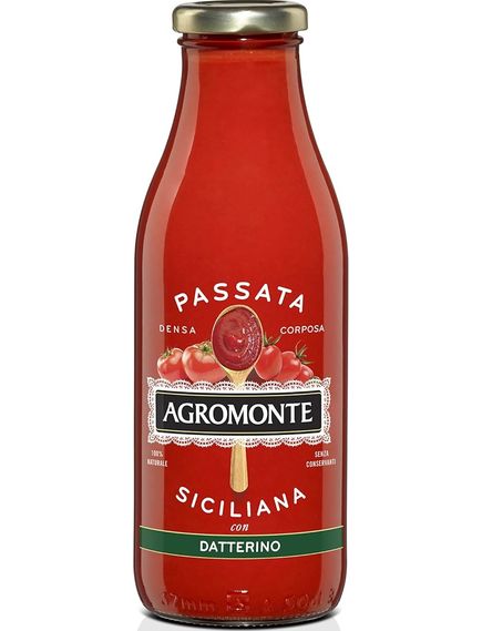 Пюре з помідорів і даттеріно Agromonte народилося завдяки турботі, яку родина Арестія завжди приділяла вибору сировини, виготовленої вручну. Ретельний відбір фруктів кваліфікованим персоналом дозволяє створити продукт з інтенсивним смаком, який щодня оживає на італійських кухнях.
