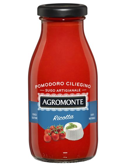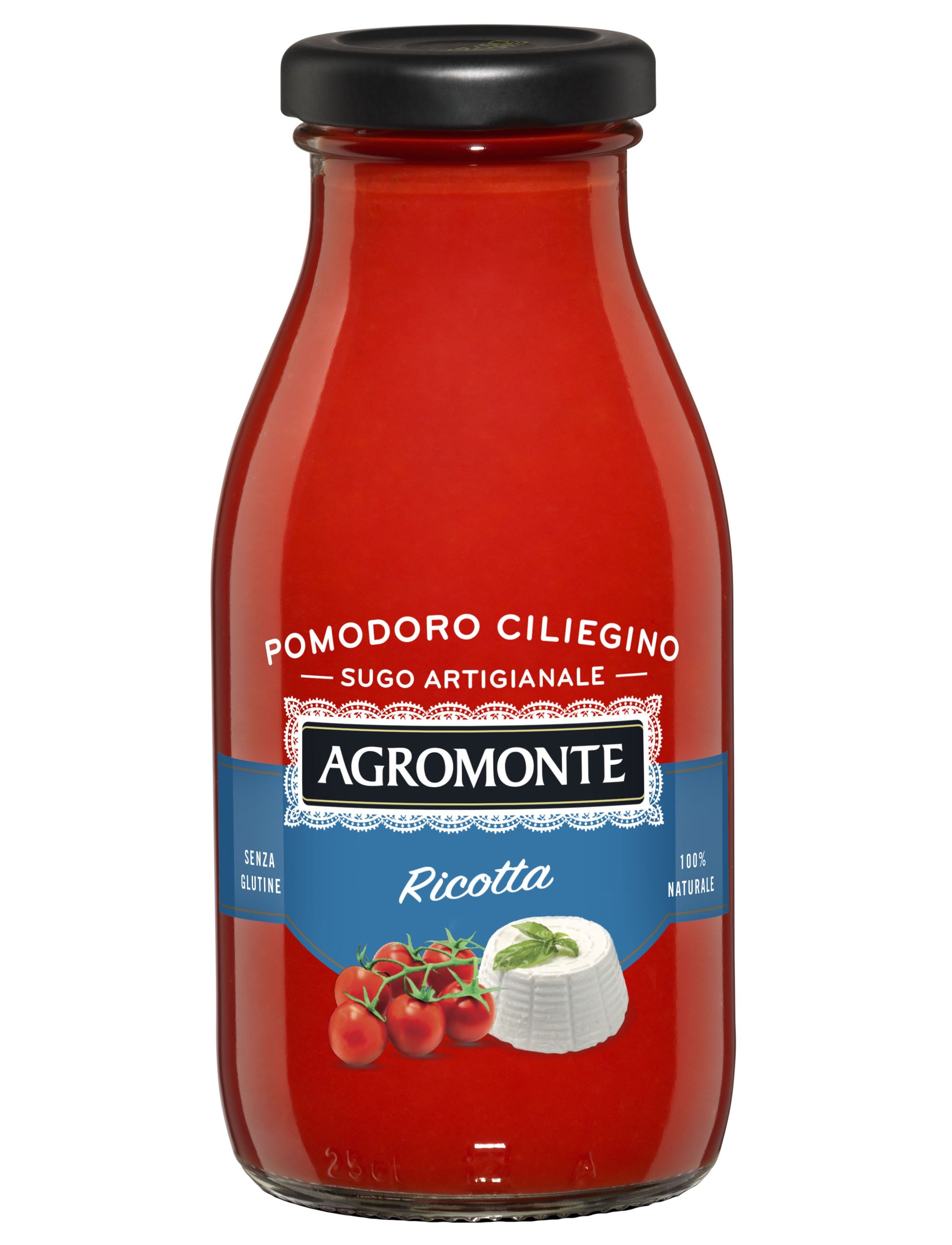 Рікотта зі свіжого коров’ячого молока та помідори черрі змішуються для створення вершкового та насиченого соусу, який стає ще більш незвичайним завдяки додаванню оливкової олії першого віджиму та ароматичних трав. Простий соус, який дозволяє вибухнути автентичному смаку сировини, обраної та обробленої по-справжньому, як і всі продукти Agromonte.