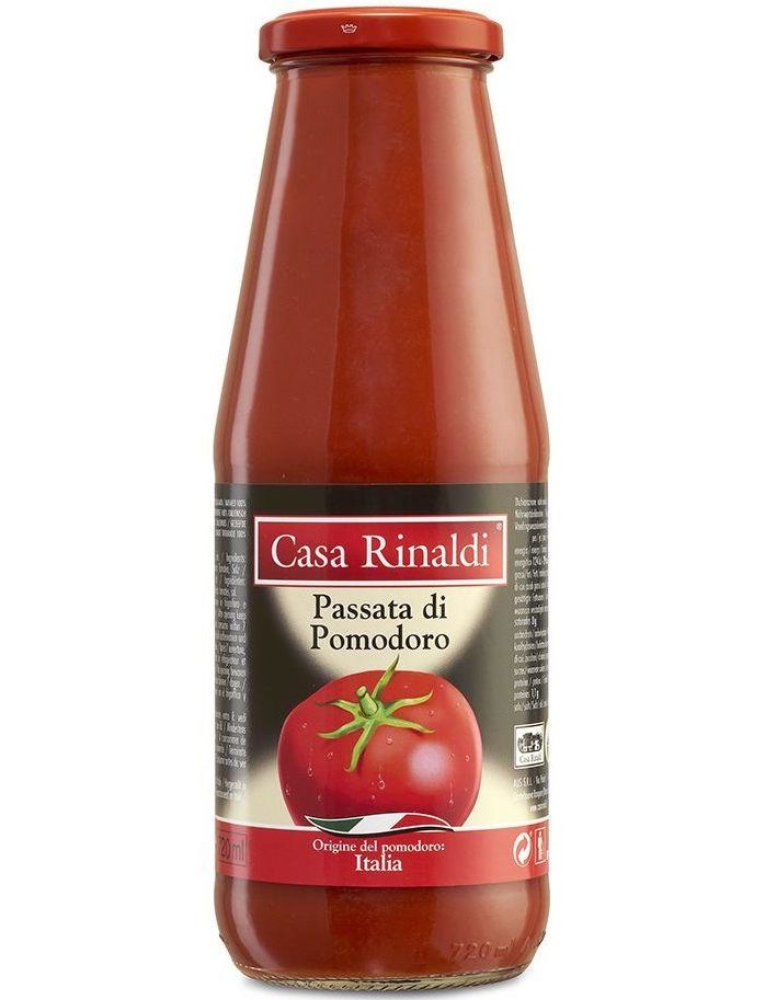 Томатні пюре Casa Rinaldi нагадують автентичність простого та незамінного соусу. Обволікаюча консистенція, гладка, але не дуже щільна, робить його особливим і готовим до використання. Це пюре зберігає всі властивості стиглого, солодкого та ароматного помідора.
