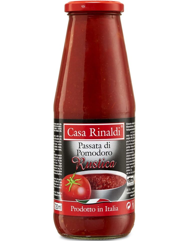 Це також надзвичайно універсальний продукт, який ідеально підходить для приготування інших соусів і як самостійний соус. Відкрийте для себе три доступні варіанти Casa Rinaldi: класичне пюре, пюре з базиліком і Рустика.