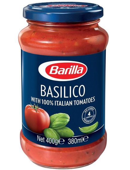 Склад: томатна м`якоть 71%, томатний концентрат 14%, цибуля, соняшникова олія, базилік 2%, цукор, сіль, натуральний ароматизатор.