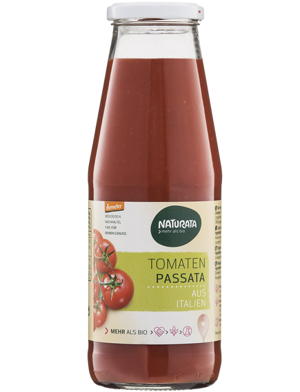 Томатна пассата Naturata Demeter походить від італійської Azienda Agricola Terre di Sangiorgio в Сан-Джорджо-П'ячентіно. Маттео Гаццола практикує тут біодинамічне землеробство з 1990 року. Хоча спочатку він зосереджувався на вирощуванні овочів для регіонального маркетингу, у 1995 році він змінив бізнес і відтоді зосередився на вирощуванні помідорів. Паралельно було побудовано виробництво, де переробляють помідори безпосередньо після збору врожаю. Це дозволяє плодам повністю дозріти в полі, щоб ви могли відчути всю силу італійського сонця в продуктах.