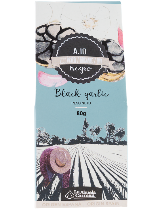 Виготовлений з органічного часнику з нашої власної ферми, наш чорний часник отримують шляхом тривалого природного процесу дозрівання, який поєднує температуру та вологість протягом понад 40 днів, без додавання добавок чи консервантів. Чорний часник позбавлений сильного, характерного смаку свіжого часнику та має солодкий смак з ніжною текстурою.