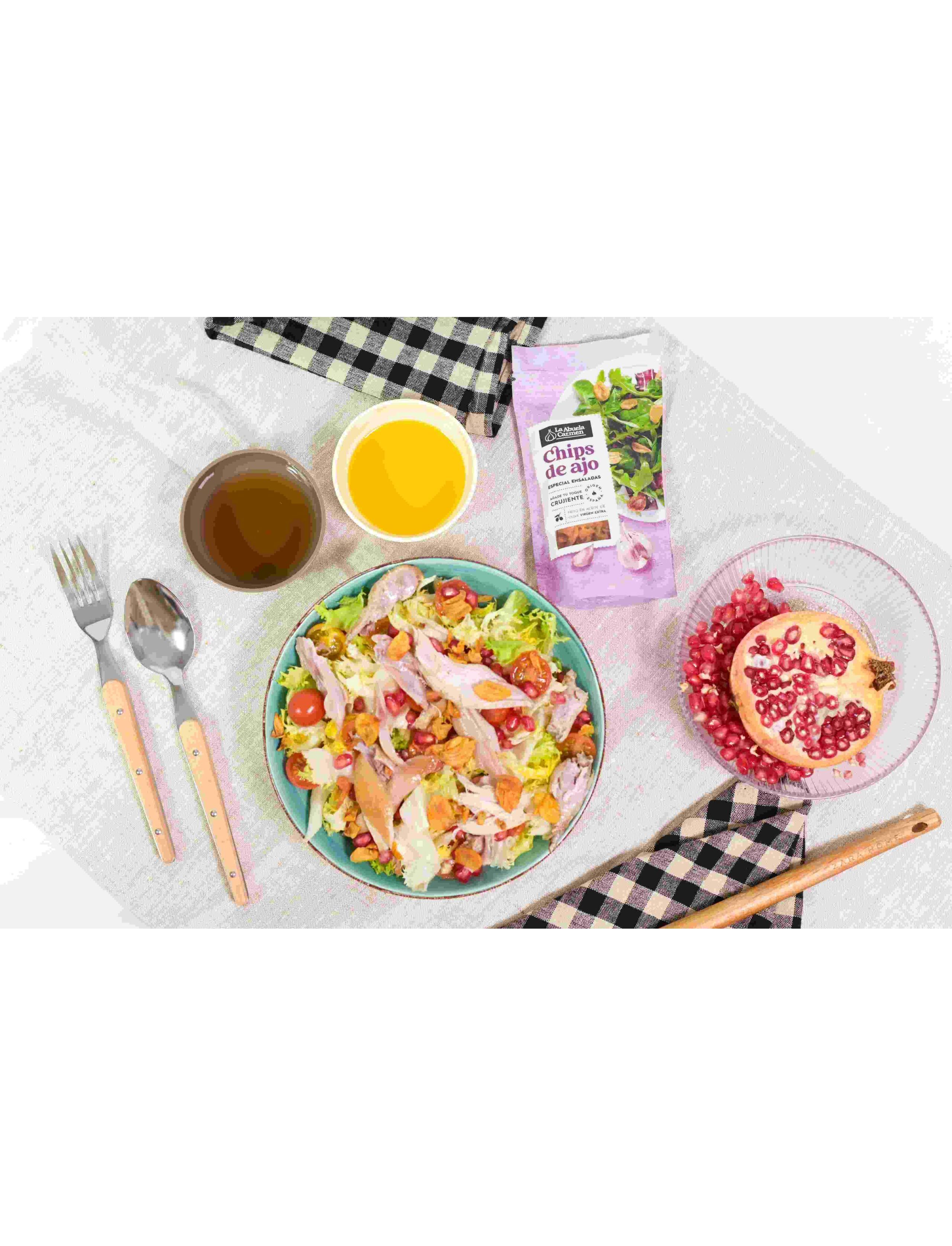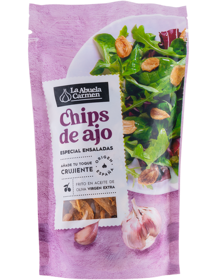 Наші часникові чіпси – це більше, ніж просто закуска . Виготовлені з часнику найвищої якості, вони ідеально підходять до салатів, смаженого м’яса та риби, тушкованих овочів, страв на грилі… Кожен шматочок наших смажених часникових чіпсів дарує насичений та автентичний вибух смаку.