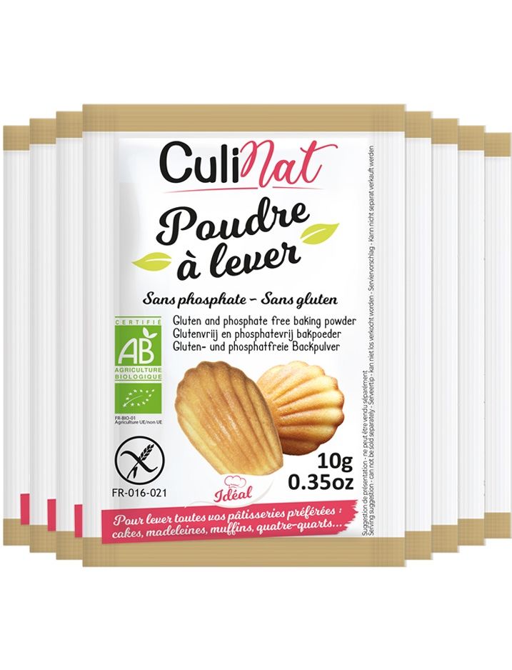 Органічний розпушувач без вмісту фосфатів і глютену ідеально підходить для додання висоти вашим тортам, кексам і тістечкам і надання їм м’якої текстури. Без глютену, на основі кукурудзяного крохмалю з органічного землеробства. 8 пакетиків по 10 гр.