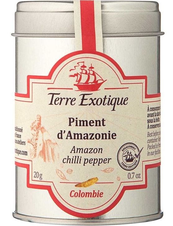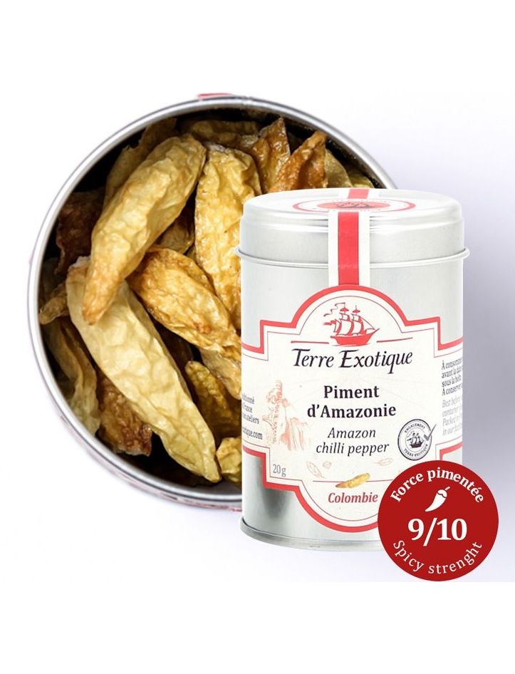 Амазонський перець з Колумбії дуже гострий; це також одне з найгостріших. Його блідо-жовтий колір пояснюється його збиранням до дозрівання. Його фруктові нотки та тонка кислинка покращать ваші страви з соусами, а також соусами. Шкала Сковілла: 8/10 (вулканічна).
