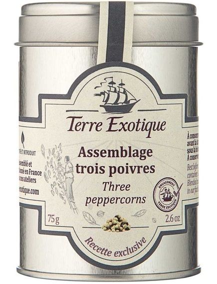Суміш перців Terre Exotique — це плід багатьох випробувань і дегустацій, щоб отримати потрібну суміш смаків. Цей рецепт був створений з особливою ретельністю, щоб отримати ідеальний баланс потужних ароматів трьох перців. Суміш трьох перців включає: