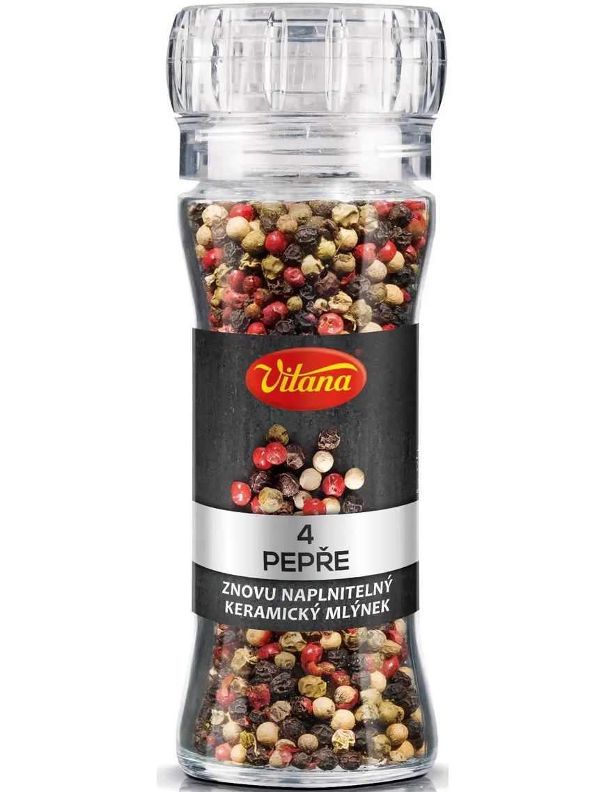 Елегантний дизайнерський млин для перцю Vitana 4 особливо підходить для заправки стейків. Але він також підходить для соусів, супів та інших страв. Подрібнивши суміш 4 перців, ви досягнете більш вираженого, ароматного та свіжого смаку перцю. Порада: ви оціните виразний смак 4 перців, особливо на якісному м’ясі, тому спробуйте його на стейку з яловичини, шматочку тунця або лосося.