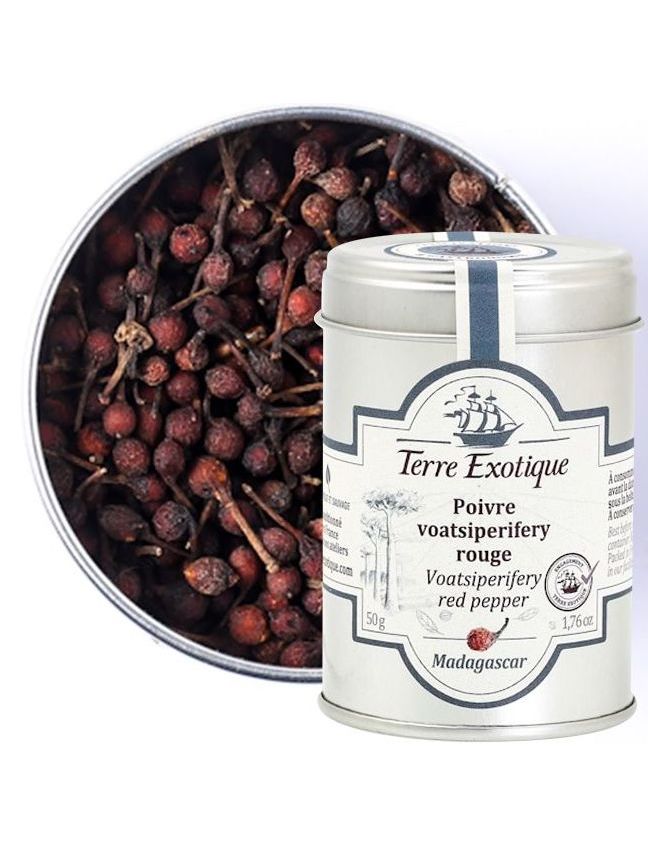Чорний перець Воаціперифери – улюблений перець багатьох кухарів, які працюють з Terre Exotique. Це також один із фаворитів команди, тому що він не приправляє горло та підходить до всього. Наша порада? Додайте нотку воастіпериферного чорного перцю до приготування панакоти з темного шоколаду.