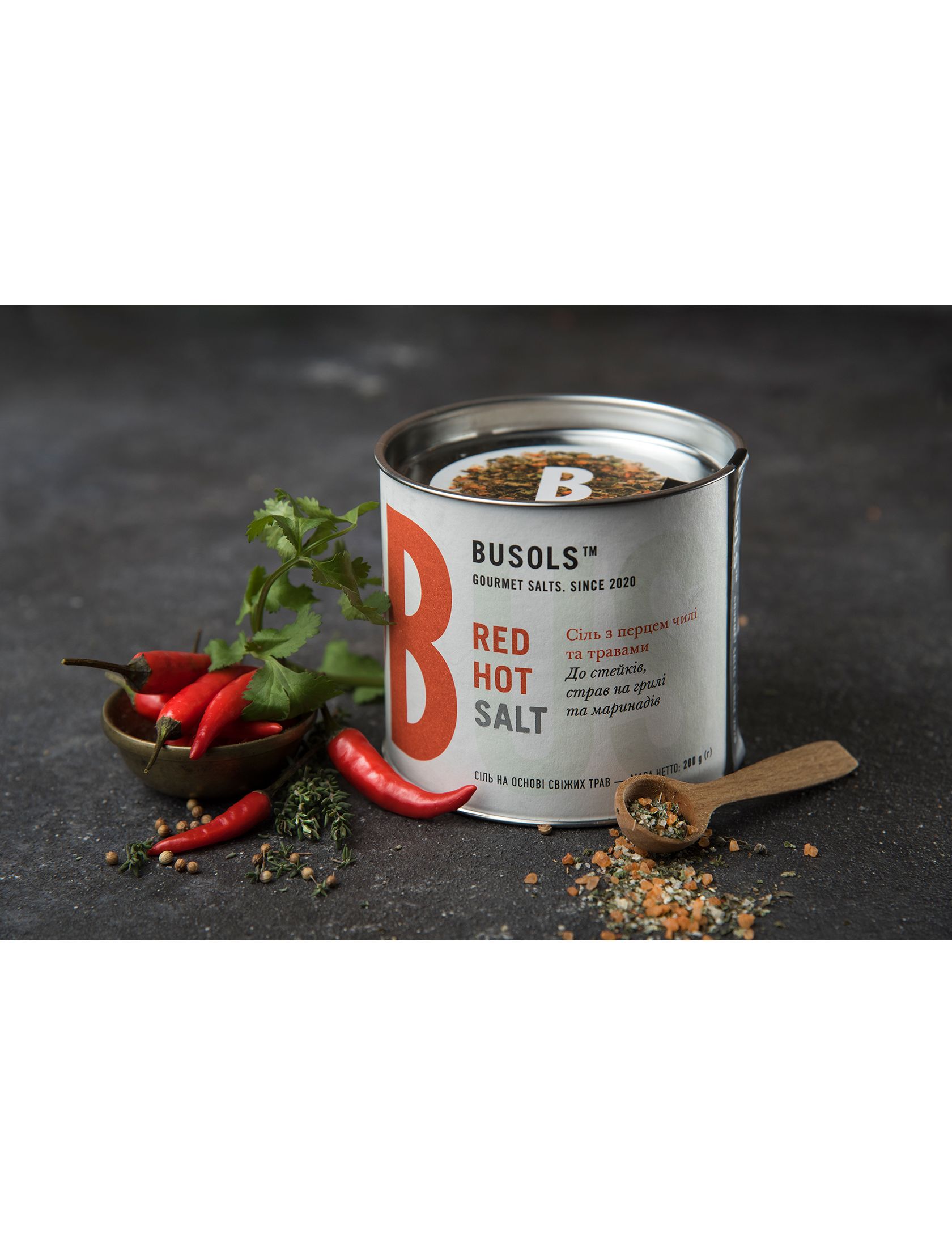 Ароматна плівка з ферментованого чилі, що вкриває кожен кристал солі, надає red hot salt специфічної пікантності, яка доповнюється меленим коріандром, чорним перцем і різаним чилі. А довершують рецептуру просолені зелена цибуля, кінза, чебрець та імбир.